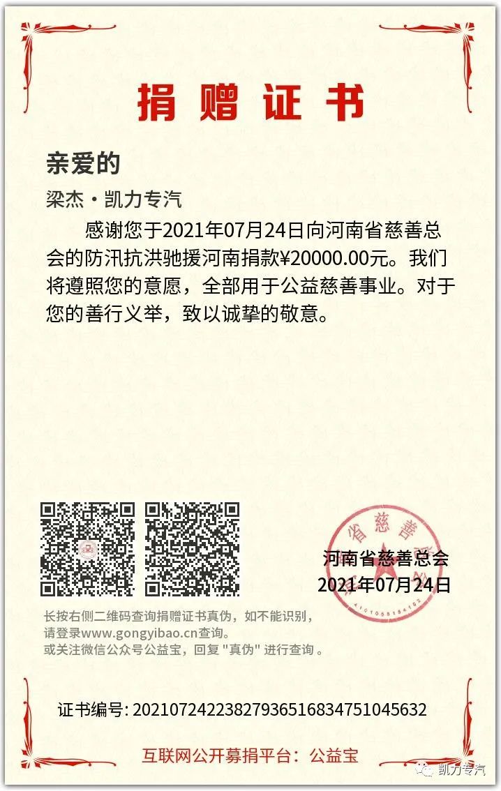 听党话、跟党走,风雨无情,凯力有爱。公司董事长梁杰先生心系灾区,以个人名义向受灾地区定向捐款两万元。同时,他还强调,公司的多功能抑尘车、道路洗扫车、清洗吸污车要24小时待命,随时准备开赴灾区,为受灾地区的灾后重建工作做好准备。