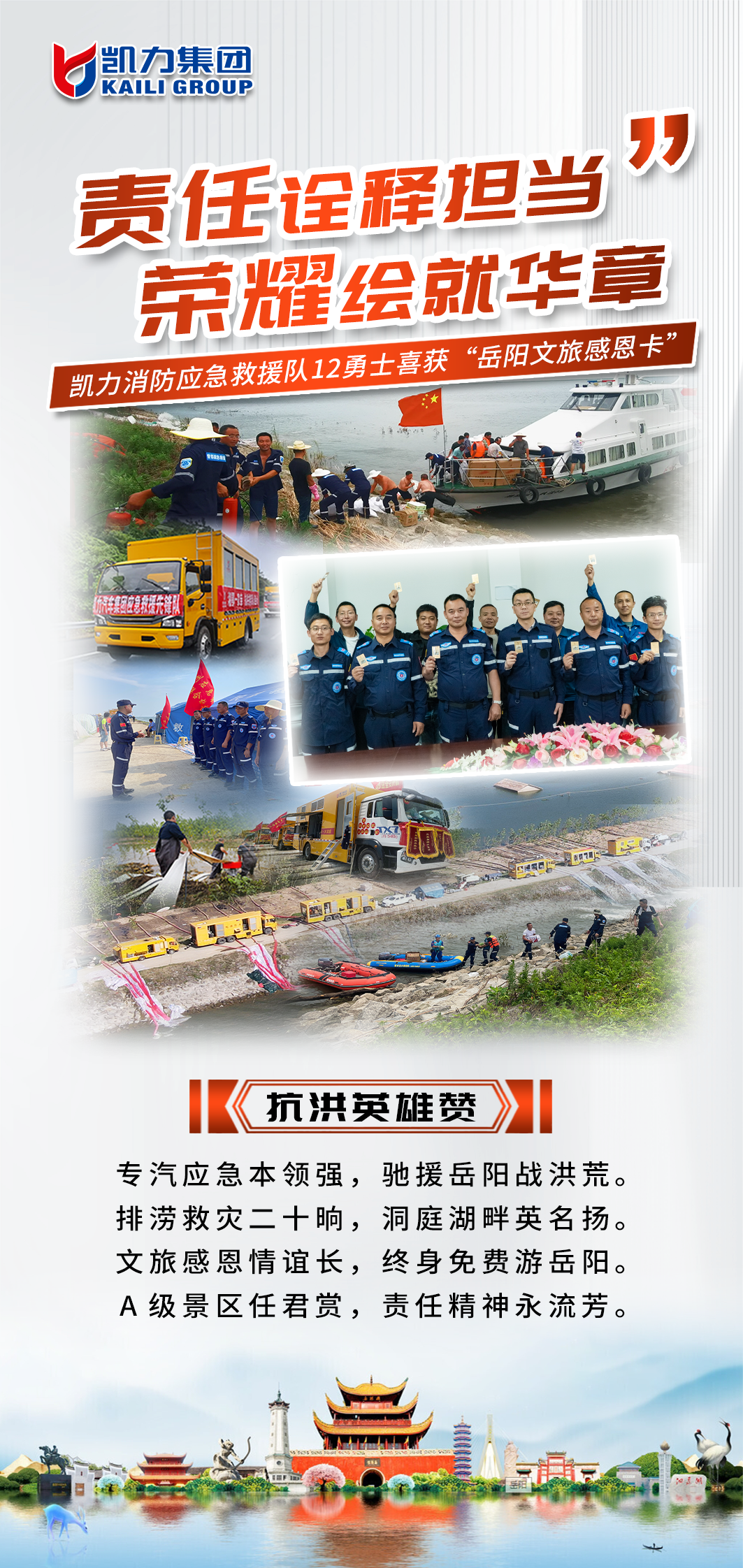 近日,凯力汽车集团举办了一场意义非凡的岳阳文旅感恩卡发放仪式,发放对象为凯力汽车集团参加湖南岳阳抗洪救灾的凯力应急救援分队的12名队员,感谢他们在岳阳抗洪救灾期间,圆满完成抽水排涝救险任务,为受灾群众早日返乡、重建家园奠定坚实基础。充分展现了凯力应急救援分队的专业救援水平和顽强过硬的作风以及非凡的拼搏精神,成为众人敬仰的榜样。