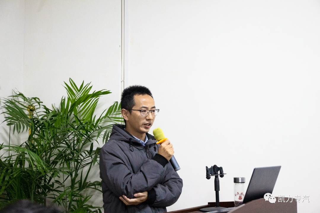 会议第三项议程,用友湖北分公司技术总监苏大鹏上台发言。苏总表达了对凯力ERP项目上线成功的期待,期待ERP项目可以助力凯力腾飞,飞得更高!