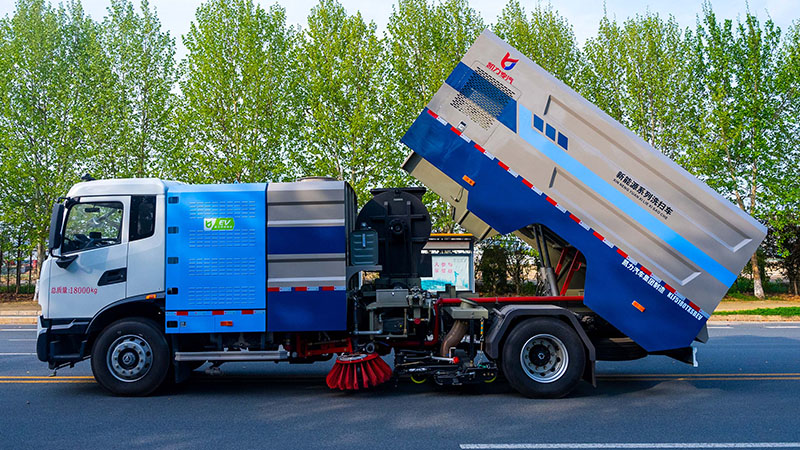 以纯电动、油电混合、燃料电池等为动力源的洗扫车,具有传统燃油版洗扫车的路面洗扫,路面冲洗,喷雾降尘,高压冲洗卷盘等多种功能,而且相比燃油版洗扫车还具有静音环保、操控舒适便捷、低运营成本等优势。