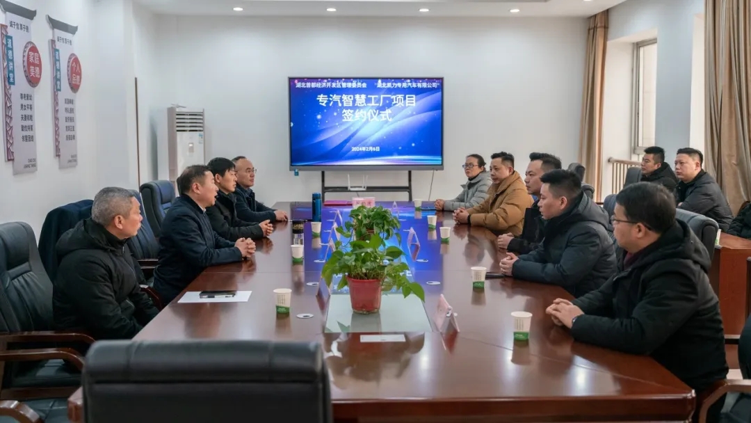 2024年2月6日,湖北凯力专用汽车有限公司与湖北曾都经济开发区管委会“专汽智慧工厂项目”签约仪式隆重举行。集团董事长梁杰、总经理梁俊等公司领导,曾都区副区长罗俊涛、区科经局、区招商服务中心、北郊街道办事处相关负责人出席签约仪式。