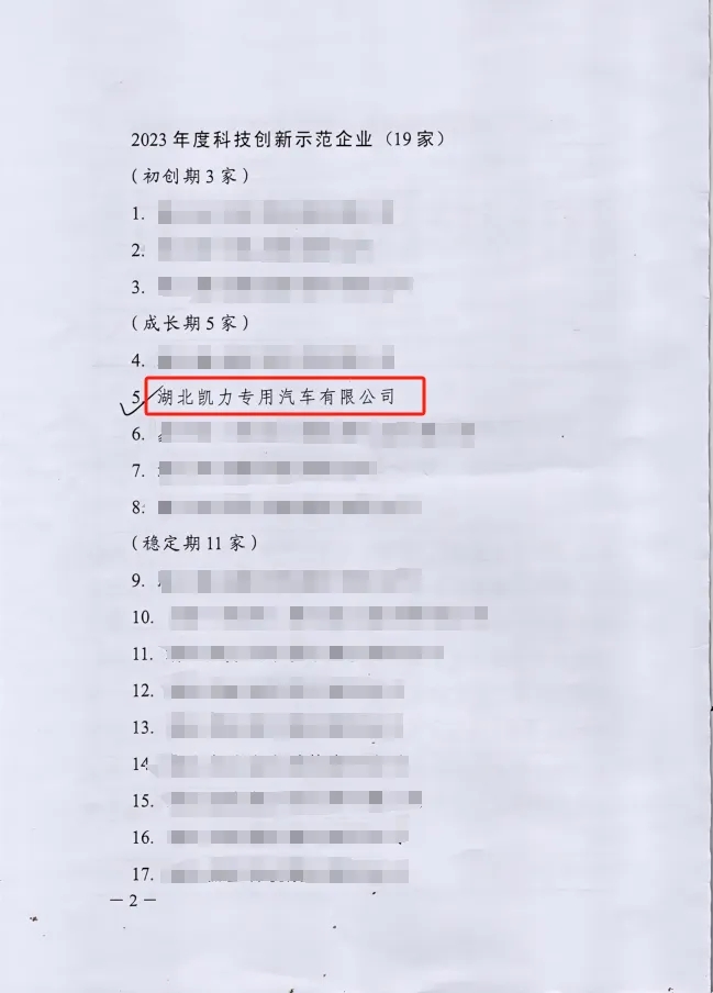 湖北凯力专用汽车有限公司凭借在专用汽车领域的卓越创新表现,成功荣获 “科技创新示范企业” 荣誉称号,这一殊荣不仅是对企业长期以来坚持科技创新的高度认可,也标志着其在行业内的科技引领地位得到进一步巩固。