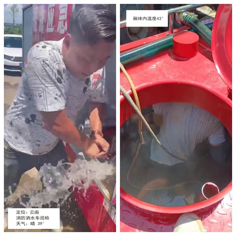 云南,37度高温天气,售后人员对客户车辆进行巡检,确保产品性能处于最佳状态。