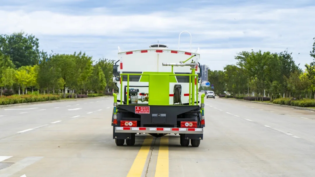 耐用:产品配置完善、操作性能好。罐体尾部有量管,使水罐内水量一 目了然。罐体尾部有操作平台,平台有安全防护栏保障操作人员安全,平台上有爬梯方便操作人员上下车观察罐内情况。