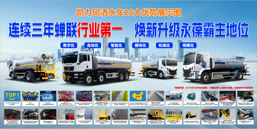凯力风福田H2抑尘车是湖北凯力专用汽车有限公司自主研发设计,性能达世界领先水平。标配:万向前冲、后洒、侧喷、后置式工作平台、平台上有高压水炮(可 360°旋转,可调成柱状最大射程 35 米,也可调成雾状最大射程 15米,(可调成:直冲状、大雨、中雨、小雨、毛毛雨)。
